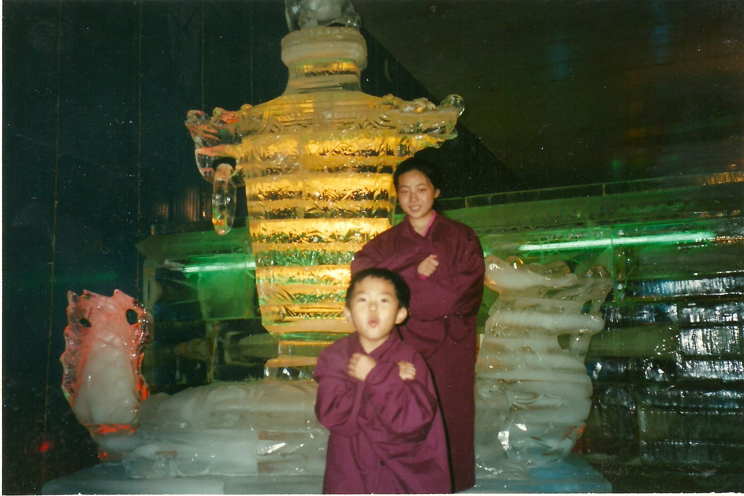 In Nanjing, my dad’s older brother Dabaibai picked us up with my aunt Dabaima to stay at my paternal grandmother’s old apartment on the university campus. Nanjing scared me because it felt much bigger than Taizhou. There were more open spaces, and felt much wider than even back home in Alhambra. It was also very green, I noticed as I watched my cousin Xuechen play with cousin Mimi in a field on campus against the backdrop of a bell tower covered with thick vines and ivy. I didn’t get along with cousin Xuechen at first as she felt frustrated tutoring me at math, complaining out of the corner of her mouth that I was slow. But we made up, watching the Hulu Brothers cartoon on tv together. She eventually took me with her to an indoor playpark that had a soft inflated obstacle course we climbed together and a colorful ball pit we dove into as the music from My Neighbor Totoro played overhead. She also took me to the indoor ice sculpture festival that was in town that summer. We put on very large, thick maroon colored robes as we looked at beautiful carved frozen sculptures in the shape of swans, bears, and dragons lit up with various color lights. I jumped up and down excitedly as I saw my own breath form in the frigid air. Later that night, as Dabaibai and Dabaima took us walking at Lake Xuanwu, the air hung humid and cicadas sang in the trees in tune with Jacky Cheung and Teresa Teng songs blaring over the PA. I argued with Dabaibai whether to take the taxi home or the bus home. “Taxi taxi taxi taxi!” I yelled. “Bus bus bus bus”, he argued back, adding “I can talk faster, I win!”